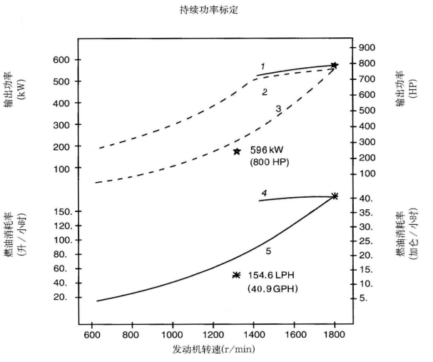 1.  制動(dòng)功率  kW(HP)                                                         4.  軸功率對(duì)應(yīng)的燃油消耗