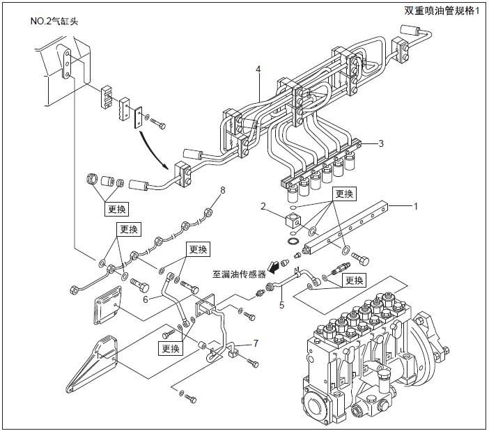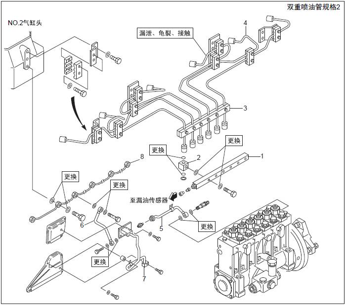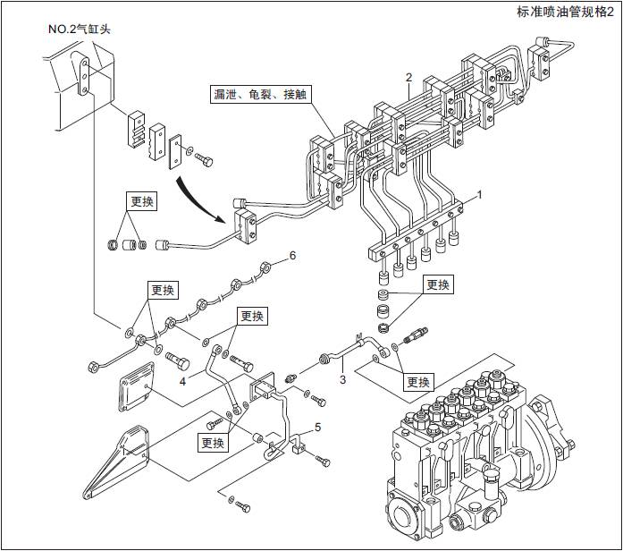 三菱S6R發動機燃油噴油管、燃油溢流管的拆卸,檢測