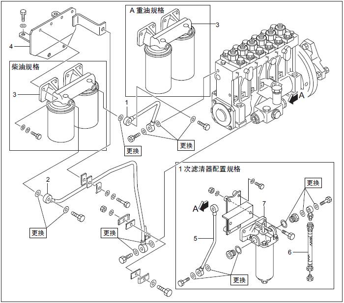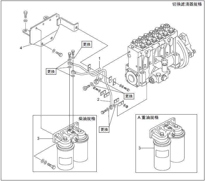三菱S6R發動機燃油濾清器、燃油管的拆卸,檢測
