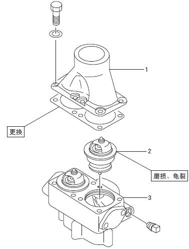 1 三菱S6R發動機恒溫器端蓋 2 三菱S6R發動機恒溫器 3 三菱S6R發動機恒溫器殼體