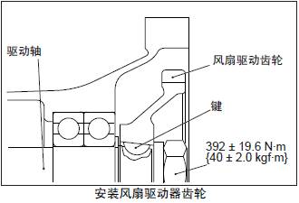 (8) 風扇驅動齒輪和驅動軸的鍵對準后安裝,按照規定的扭矩緊固螺帽。