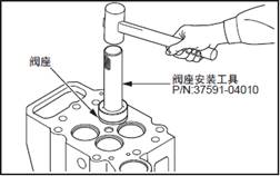 (3) 用專用安裝工具將閥座安裝在三菱S6R柴油發動機氣缸頭上。