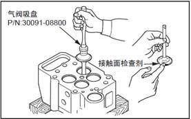 在三菱S6R柴油發動機氣閥門的接觸面薄涂一層檢查劑( 不含鉛的著色劑),用三菱S6R柴油發動機氣閥門吸盤檢查三菱S6R柴油發動機氣閥門和閥座接觸面的吻合狀況。發現接觸面不同或異常,或超過極限值時,修正或更換新品三菱S6R柴油發動機氣閥門或閥座。