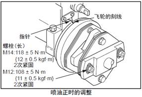 (2) 旋松驅動器聯軸器的螺栓( 長),僅僅盤轉三菱S6R柴油發動機燃油噴油泵,使記號「0」的刻線和指針一致,然后旋緊螺栓( 長)。