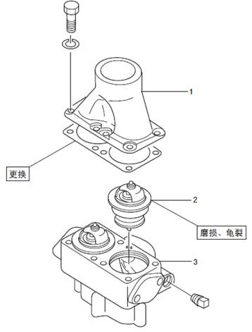 2.3 三菱S6R柴油發動機缸套冷卻水用、空氣冷卻器用恒溫器的拆卸,檢修