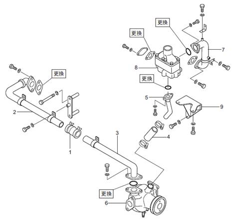 首頁 產品展示>三菱S6R柴油發動機空氣冷卻器用水泵、恒溫器、水管的拆卸,檢修