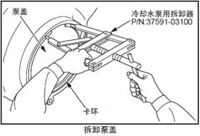 (1) 用水泵拆卸器將固定泵蓋的卡環拆除,拆下泵蓋。