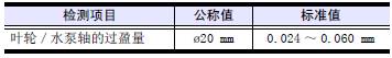 測量水泵泵體和軸的軸承瓦裝配部位、軸承瓦的外徑和內徑。不在標準值范圍內時,更換新品。