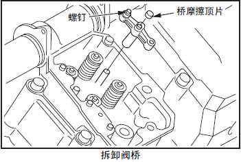注: 注意橋摩擦頂片不要掉落三菱S12柴油發動機氣缸頭內。