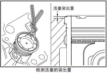 檢測(cè)要領(lǐng)參考「三菱S12柴油發(fā)動(dòng)機(jī)本體的組裝」的「檢測(cè)三菱S12柴油發(fā)動(dòng)機(jī)活塞的突出量」項(xiàng)。