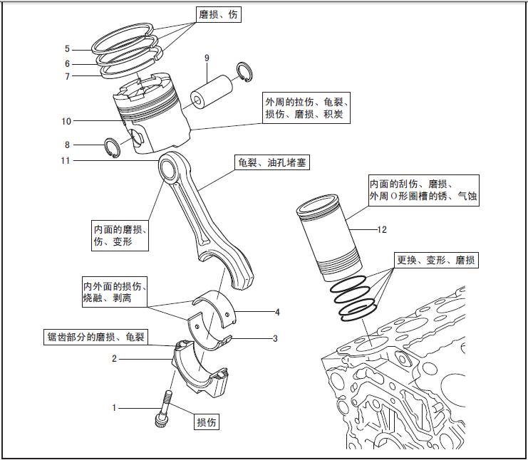 三菱S12柴油發(fā)動(dòng)機(jī)缸套、三菱S12柴油發(fā)動(dòng)機(jī)活塞、三菱S12柴油發(fā)動(dòng)機(jī)連桿的解體、檢修