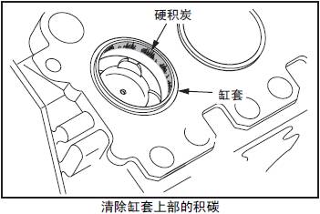 用積碳清除劑,將三菱S12柴油發(fā)動(dòng)機(jī)缸套上部的積碳清除。