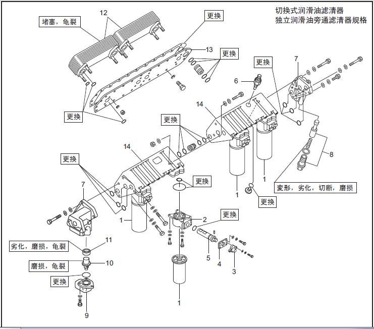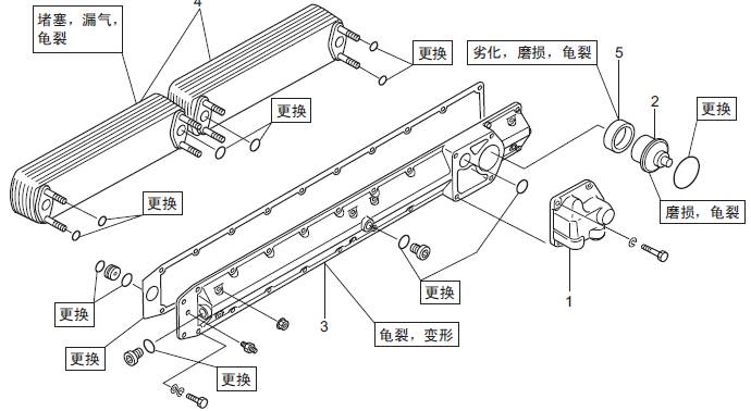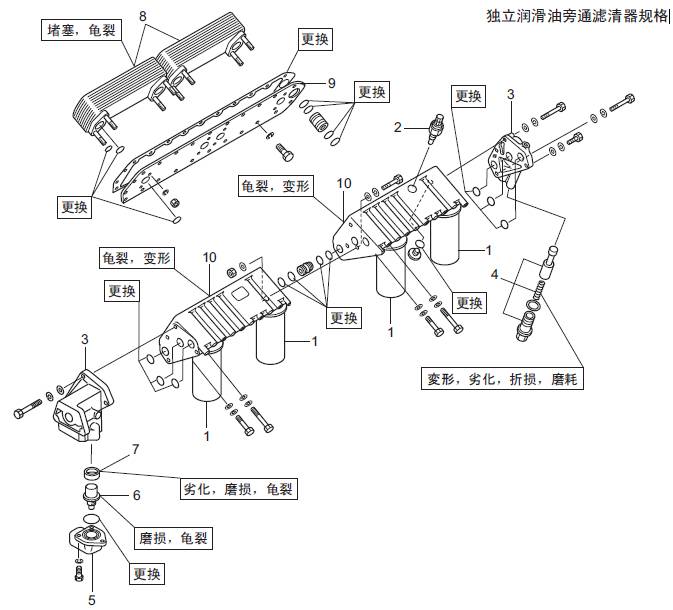 2.4 潤滑油濾清器、潤滑油濾清器報警器、釋放閥、左側潤滑油冷卻器的解體、檢修