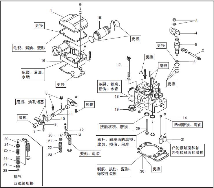 24 氣閥轉(zhuǎn)動(dòng)端蓋(24 ~ 28 排氣雙三菱R16柴油發(fā)動(dòng)機(jī)氣閥彈簧規(guī)格)