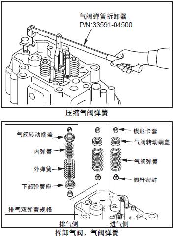 1.11 拆卸氣閥、三菱R16柴油發(fā)動(dòng)機(jī)氣閥彈簧