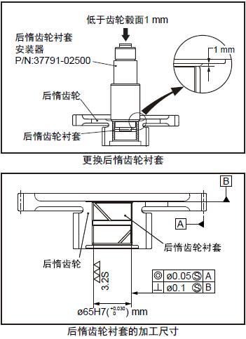 注: 更換三菱R16柴油發(fā)動(dòng)機(jī)惰齒輪襯套后適用時(shí),對(duì)三菱R16柴油發(fā)動(dòng)機(jī)惰齒輪襯套的內(nèi)徑進(jìn)行鉸削加工。