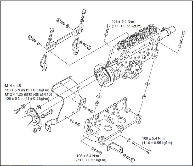 (7) 安裝噴油泵殼體和三菱R16柴油發(fā)動機三菱R16柴油發(fā)動機缸體之間的支架。