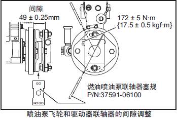 (3) 確認(rèn)塞規(guī)的NO GO側(cè)插不進(jìn),然后再次將GO側(cè)插入進(jìn)行確認(rèn)。此狀態(tài),噴油泵三菱R16柴油發(fā)動機飛輪和驅(qū)動器聯(lián)軸器之間的間隙作為設(shè)定值。