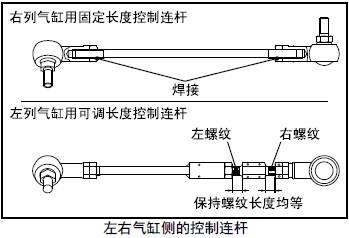 (2) 右氣缸側(cè)用固定長度(239 mm)的控制三菱R16柴油發(fā)動機連桿B-1,連接控制三菱R16柴油發(fā)動機連桿柄和控制軸的柄。