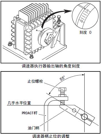 調(diào)速器執(zhí)行器輸出軸的角度刻度「0」( 不噴油位置)時,旋入止位螺栓至調(diào)速器柄的上面相接觸并鎖緊。