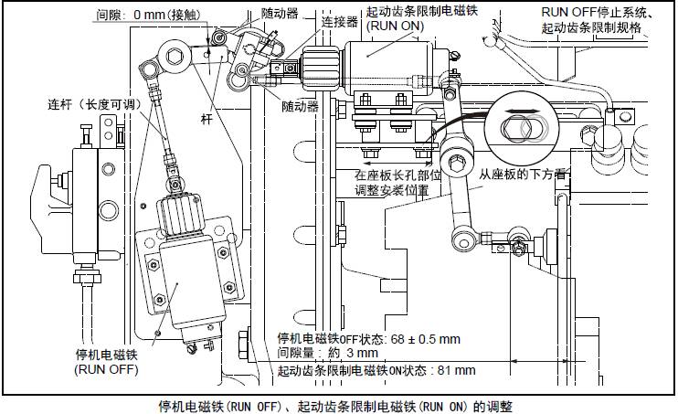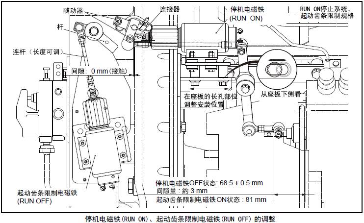 3.3.6 三菱S16柴油機停機電磁鐵(RUN OFF)、起動齒條限制電磁鐵(RUN ON) 的調(diào)整