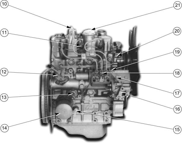 21 Filler cap for lubricating oil.