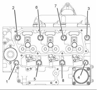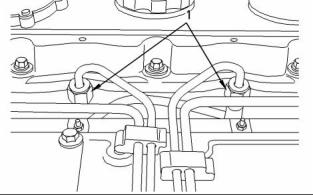 (1)  Tighten the glow plugs (3) in the cylinder head to