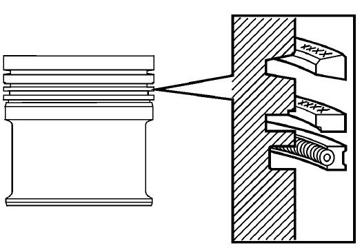 活塞槽中的活塞環間隙: