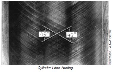 3. Use D17004BR Hone according to instructions supplied with tool to obtain a 45° cross-hatch pattern.Thoroughly clean liners after deglazing. See CLEAN CYLINDER LINERS earlier in this group for proper cleaning procedures.