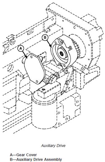NOTE: Various auxiliary drive options are available;removal and installation of all options are similar.The auxiliary drive is integrated into the enginefront timing gear cover.