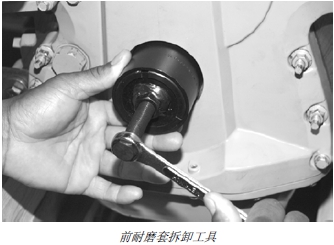 注意: 如果拆卸過程中耐磨套的凸輪緣開始滾動,應卸下拉拔器總成,使用更寬爪的夾頭卡住耐磨套。