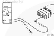 將一根測試導線插入到 OEM 線束接頭的變速箱換檔調節器信號觸針中。將鱷魚夾與萬用表表筆相連。將第二根測試導線插入到變速箱換檔調節器線束接頭的信號觸針中,然后將夾子連接到另一根萬用表表筆上。測量電阻。