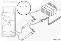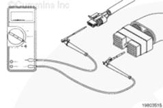 將一根測試導線插入到 OEM 線束接頭的變速箱換檔調節器信號觸針中。用萬用表的另一根表筆接觸康明斯ISB5.9 G CM2180 發動機缸體接地。測量電阻。