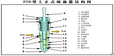 康明斯柴油發(fā)動機PT(D)型噴油器原理圖: