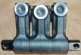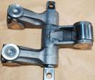 6.搖臂:構成杠桿傳遞運動,現已采用新式的球面滑動平板搖臂,消除了與橋式壓板間的磨損,設有調整螺釘和鎖緊螺母;分為進氣搖臂 (1.3.5與2.4.6缸不相同,裝配時需選擇),|噴油搖臂、排氣搖臂 (1.3.5與2.4.6缸不相同,裝配時需選擇),搖臂軸裝配時有選擇性,Front應朝向發動機前端,Rear應朝發動機后端,有“V”標示應朝下。