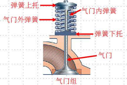 2、氣門組:氣門組包括氣門、氣門座、氣門導管、氣門彈簧、氣門鎖夾、氣門油封等零件。