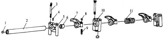 (5)檢查搖臂軸彎曲變形,超過允許極限,應校正或更換搖臂軸。