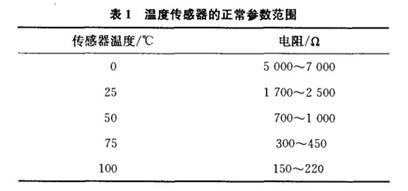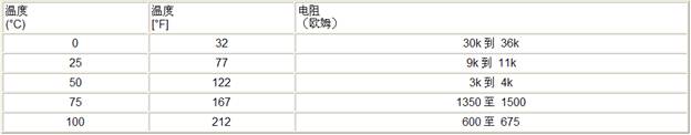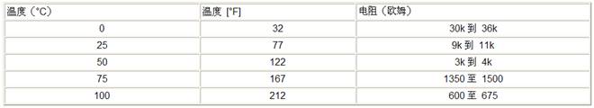 傳感器的電阻值隨溫度變化。如果傳感器的功能正常,觀察的讀數(shù)應(yīng)與下表數(shù)據(jù)進(jìn)行對比。
