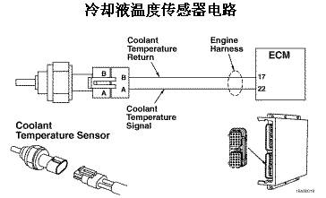 故障原因:在發(fā)動(dòng)機(jī)線束的 22 號冷卻液溫度信號觸針上檢測到的電壓低于 0.21 VDC。
