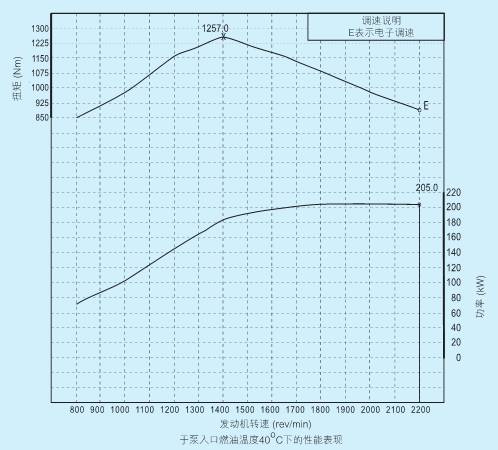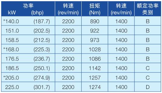 柴油發動機功率數據的測定條件,排量7.1升或以下均采用IS0/TR143961標準,進氣標準測定條件為大氣壓力100kPa蒸汽壓力1 kPa溫度25'C。測定性能時,發動機使用的燃油符合美國環保局2D 89.330--96規格:密度為0.845