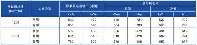 功率:于1500 rev/min時,562kWm