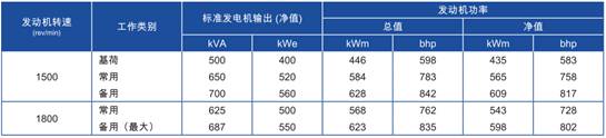 功率:于1500 rev/min時,609kWm