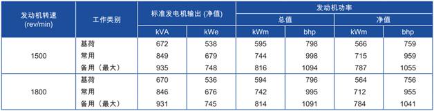 功率:1500rev/min時,787 kWm