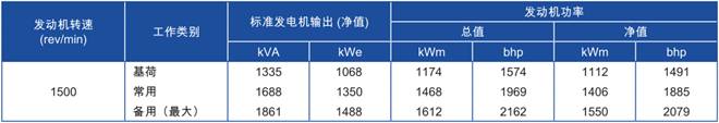 功率:于1 500rev/min時,1550 kWm