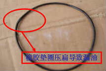 造成此故障的現象:發動機起動后,前端出現噠、噠、噠、、、、異響,發動機工作正常,并且在轉向泵與缸體結合處出現漏油的現象。 造成此故障的原因分析:可能是轉向泵安裝不良,導致轉向泵齒輪與其它齒輪在嚙合時出現異常響聲。另外,可能是水泵、氣泵齒輪安裝不良所致。該問題的主要原因在連接轉向泵進出油管時,由于安裝困難,用戶自行將轉向泵拆下,但在安裝時未能正確裝配,故而出現上述問題,圖片中的墊子被壓潰致使其接觸面漏油。 此故障的維修解決方法:更換轉向泵齒輪(或氣泵、水泵齒輪)
