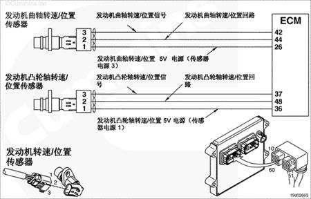 在發動機運轉過程中,發動機控制模塊 (康明斯QSB6.7發動機ECM) 檢測到凸輪軸轉速/位置傳感器信號丟失。