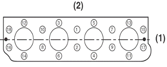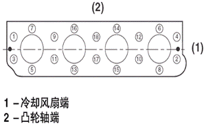 緊固汽缸螺栓時應輕微潤滑螺紋部分,分兩步將螺栓緊固到規定力矩.第一次1/2力矩,第二次到規定力矩。