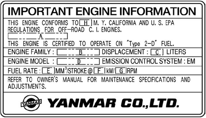 洋馬發動機EPA以及ARB環保貼牌