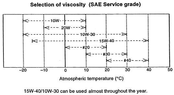API 等級 CD 或CF(美國石油工業標準)最高溫度在120℃以下使用,更換周期為250小時。
