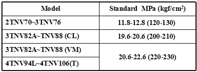 極限 :新噴油嘴需要磨合 按比下表中標準高 5 Bar調整:
